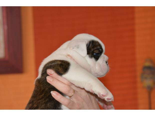 Donne dernier chiot bouledogue anglais mâle lof d'une portée de 6,il est né le 18 février 2014,vacciné,vermifugé,pucé 250239790455623 et élevé en famille avec ses parents,donc parfaitement sociabilisé.n° de la mère 06757102,n° du père 190000104760.Me contacter pour plus de renseignements.